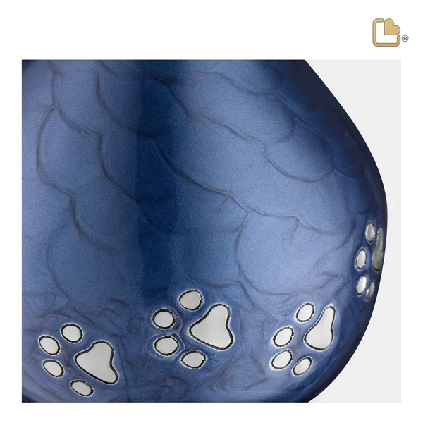 Features delicate brushed pewter paw prints symbolizing the lasting imprint of a pet’s love.